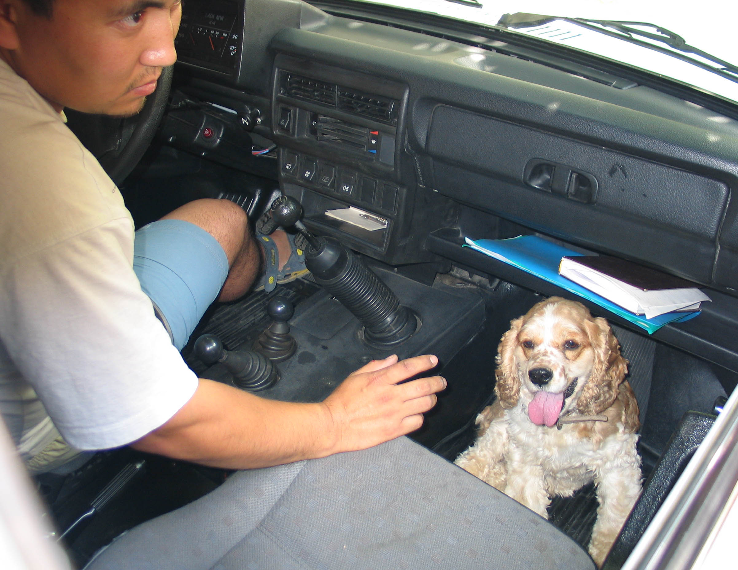 "Boy", a sniffer dog used by mobile police groups to search for narcotics, with his owner in Bishkek, June 2004. Mobile teams were created and equipped with vehicles and drug-scenting dogs under the OSCE Police Assistance Programme for Kyrgyzstan.