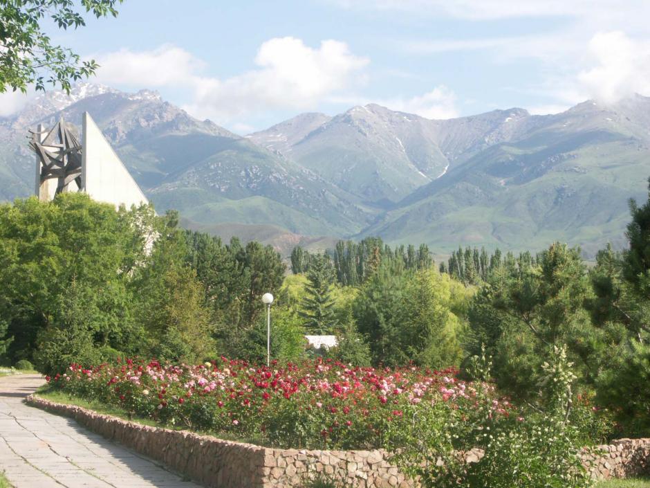 The snow capped peaks of the Tien Shan mountains rise up south and east of Lake Issyk-Kul, northern Kyrgyzstan.