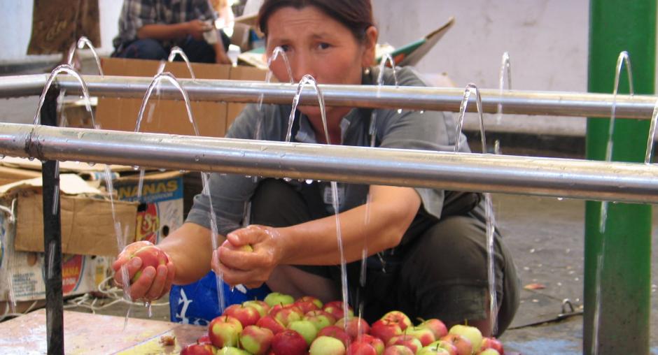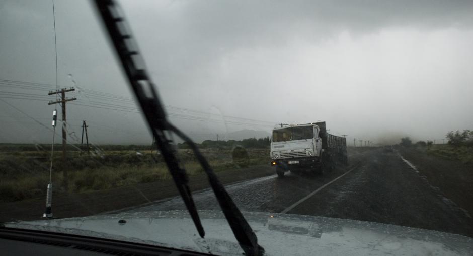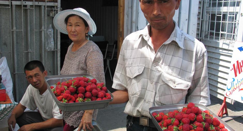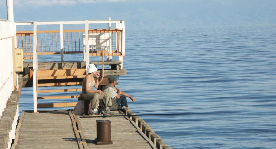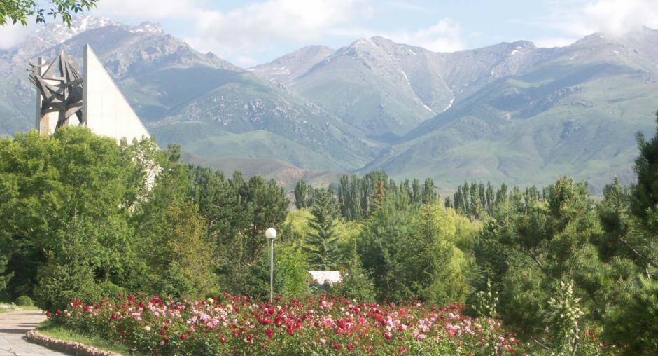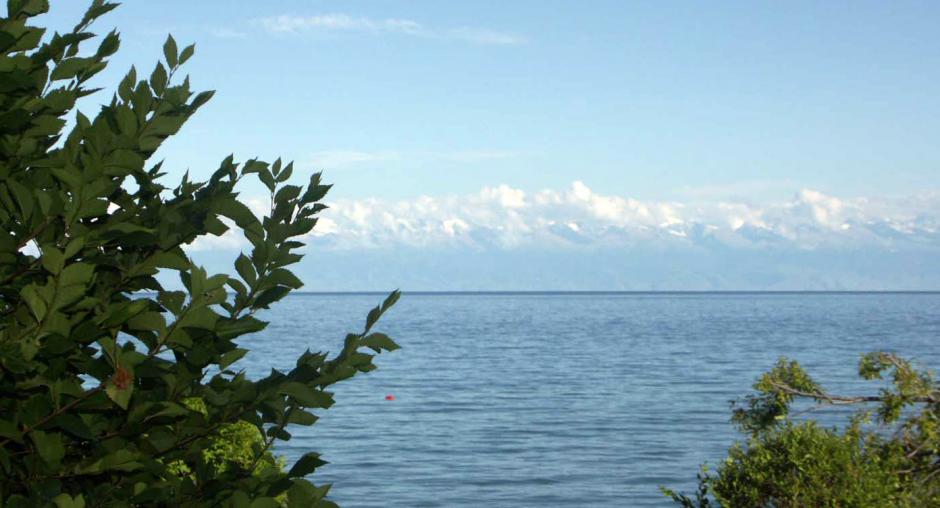 Snow capped mountain peaks shine from across Lake Issyk-Kul in northern Kyrgyzstan. The so-called "Pearl of Central Asia" is known for its magnificent scenery. (OSCE/Marina Dmitrieva)