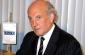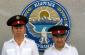 Policemen stand under the Kyrgyzstan coat of arms during a graduation ceremony at the Bishkek Police Academy, 26 June, 2004. The OSCE's Strategic Police Matters Unit builds up police capacity in several countries of the former Soviet Union. (OSCE/Mikhail Evstafiev)