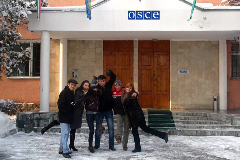 Students outside the OSCE Academy in Bishkek.
