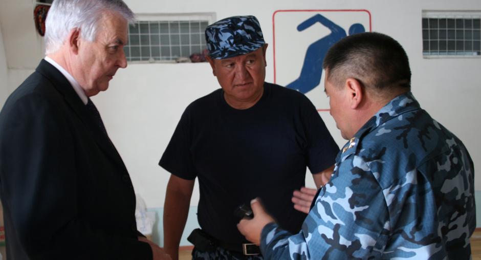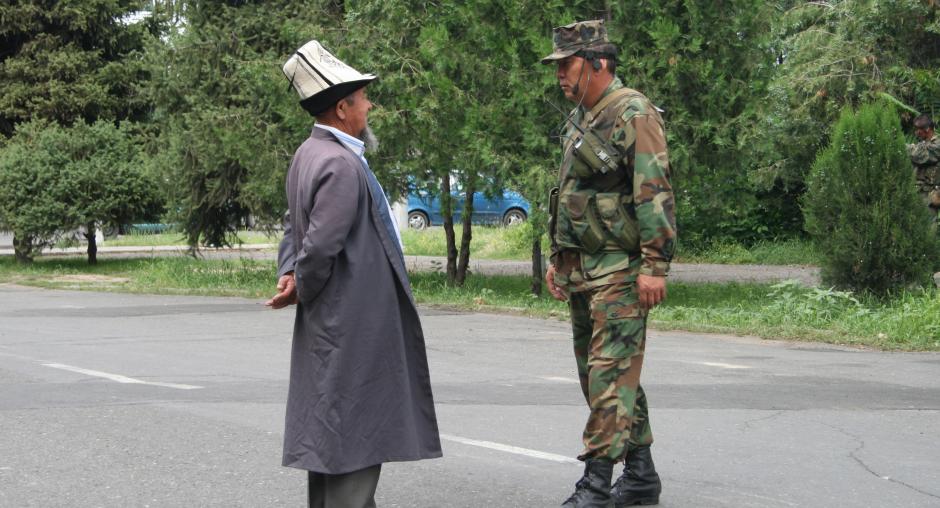OSCE Senior Police Adviser Kevin Carty (l) on a police needs assessment visit to Osh, Kyrgyzstan, following violent clashes in early June 2010. (OSCE/Ruslan Izmaylov)