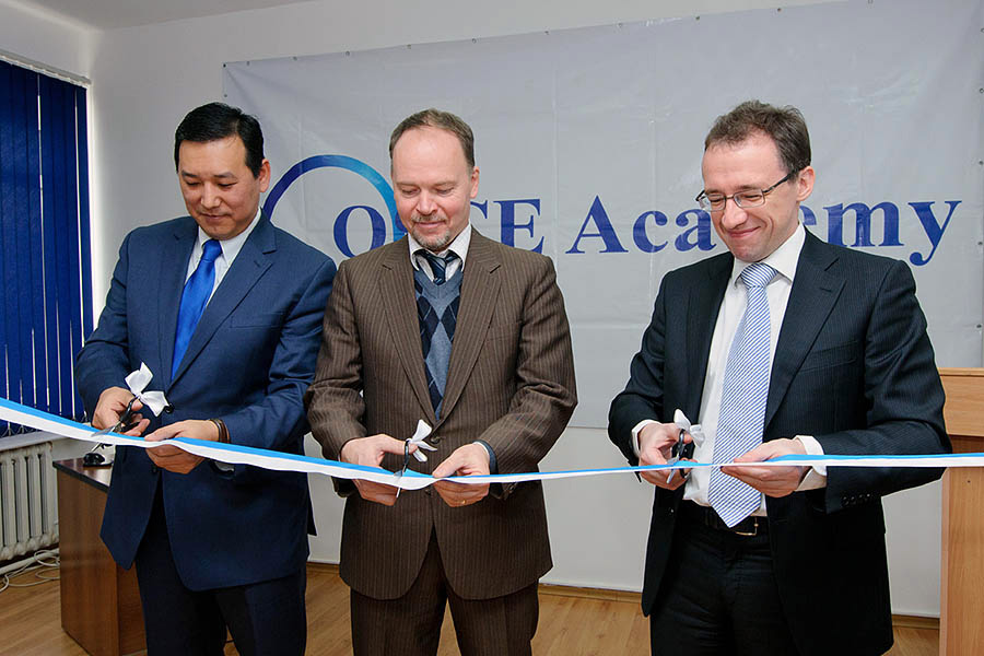 L-r: Director of the Department of International Organizations and Security of Kyrgyzstan’s Foreign Ministry Ulan Djusupov, the Deputy Head of the OSCE Centre in Bishkek Anders Troedsson, the Director of the OSCE Academy Maxim Ryabkov, at the opening of the second new Master of Arts in Economic Governance and Development Programme, Bishkek, 16 January 2012.
