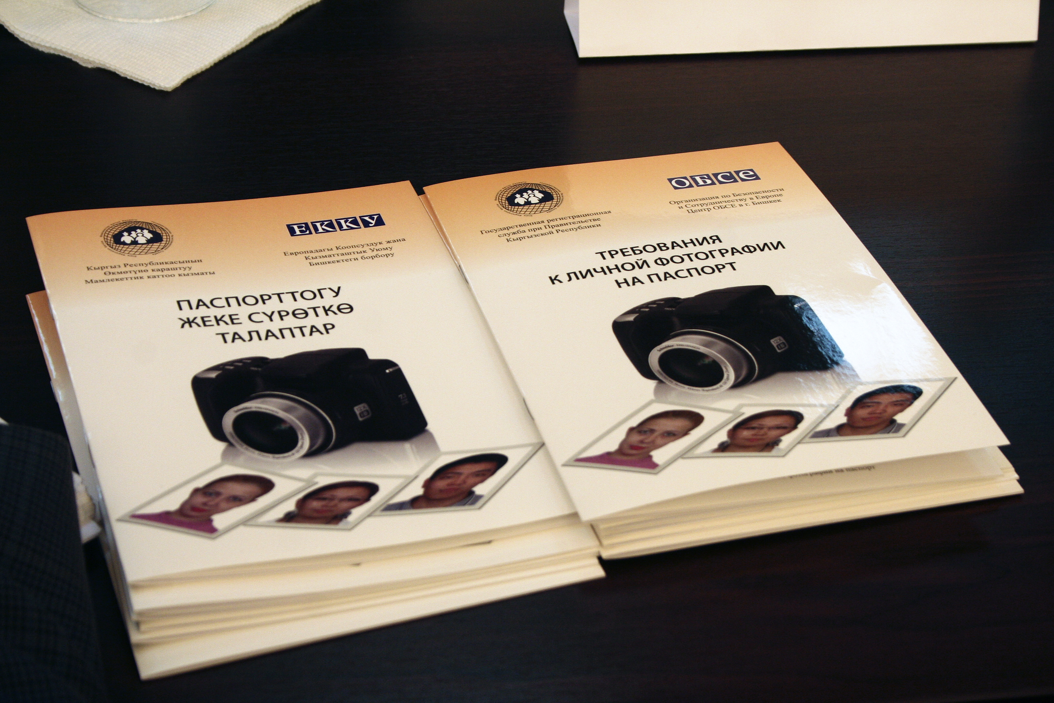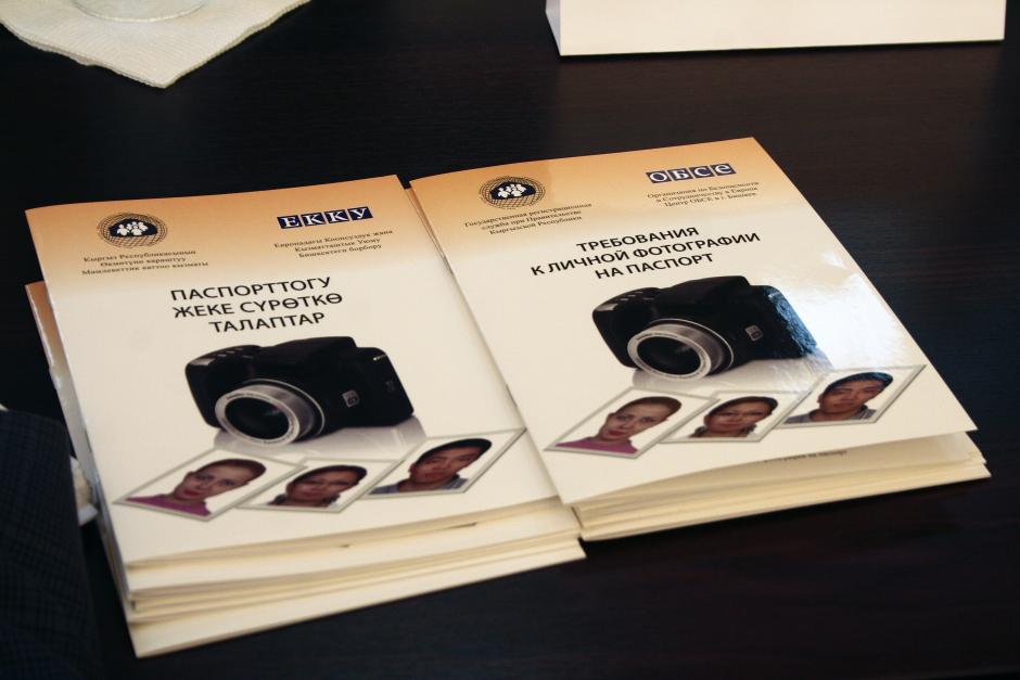 Informational brochures on the requirements for passport photographs that the OSCE Centre in Bishkek provided for Kyrgyzstan’s State Registration Service, Bishkek, 23 October 2012.