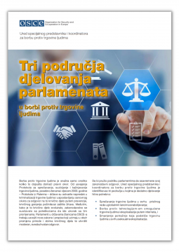U ovoj brošuri identifikovane su tri oblasti u kojima parlamenti mogu preduzeti odlučne korake za unapređenje zakonodavnog odgovora na trgovinu ljudima. Nadovezujući se na rad Ureda specijalnog predstavnika i koordinatora za borbu protiv trgovine ljudima u oblastima borbe protiv trgovine ljudima u svrhu radne eksploatacije u lancima snabdijevanja, potražnje koja podstiče trgovinu ljudima u svrhu seksualne eksploatacije i trgovine ljudima zloupotrebom informacijskih i komunikacijskih tehnologija, u ovom kratkom izvještaju ukazuje se na potrebu za savremenim, sveobuhvatnim odgovorom na svaki novi oblik trgovine ljudima, i daju se primjeri zakona koje parlamenti mogu donijeti kako bi ojačali domaći zakonski okvir za borbu protiv trgovine ljudima.