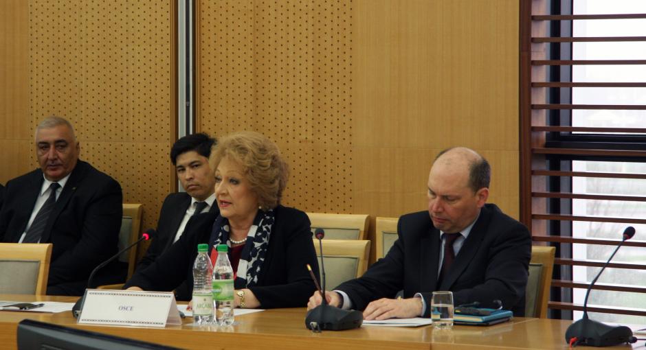 Natalya Drozd, Head of the OSCE Centre in Ashgabat (l), addresses participants of the fifth meeting at the Regional Infrastructure Confidence-building Measures (RI-CBM), Ashgabat, 3 April 2017.