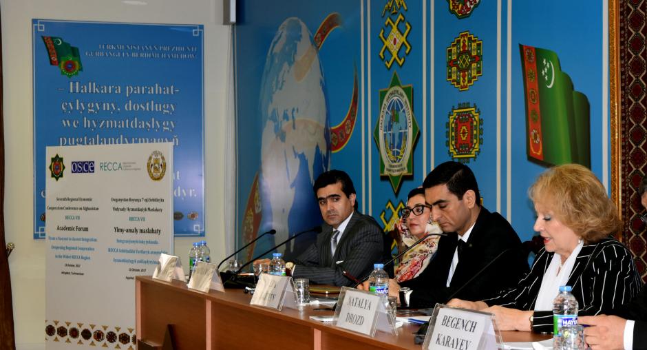 ASHGABAT, 13 October 2017 - Policymakers, diplomats and experts from the research institutes and economic sectors representing the countries of Central, South and Southwest Asia today participated in an OSCE-supported academic forum held as part of the Seventh Regional Economic Co-operation Conference on Afghanistan (RECCA VII).