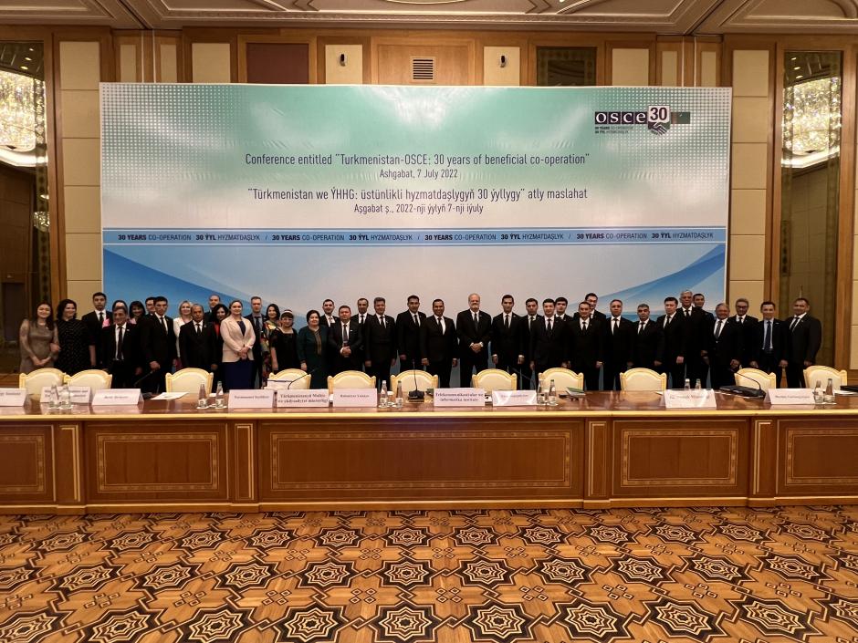 Participants at the conference to mark 30 years of co-operation between the OSCE and Turkmenistan, held in Ashgabat on 7 July 2022.