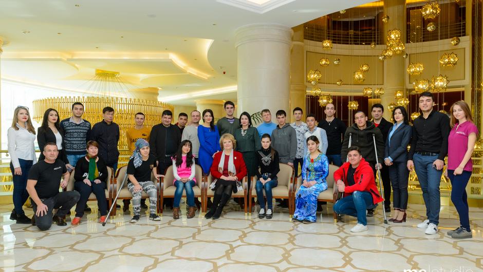 Natalya Drozd (centre), Head of the OSCE Centre in Ashgabat, with participants of the OSCE-organized photography and photojournalism master class for persons with disabilities, Ashgabat, 22 February 2019.