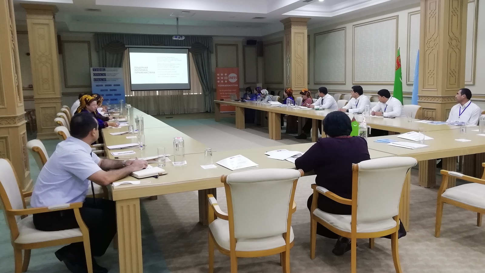 Participants during one of the OSCE –UNFPA organized roundtable discussions in the Ahal province, 8 July 2021.