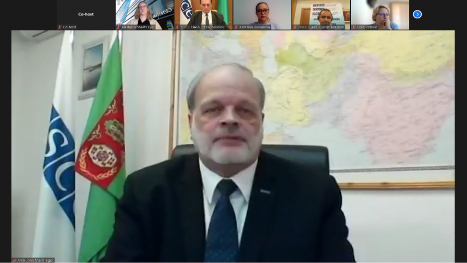 John MacGregor, Head of the OSCE Centre in Ashgabat, speaking during the OSCE-organized online seminar on enhancing capacity-building of the Ombudsperson’s office, Ashgabat 2 December 2021.