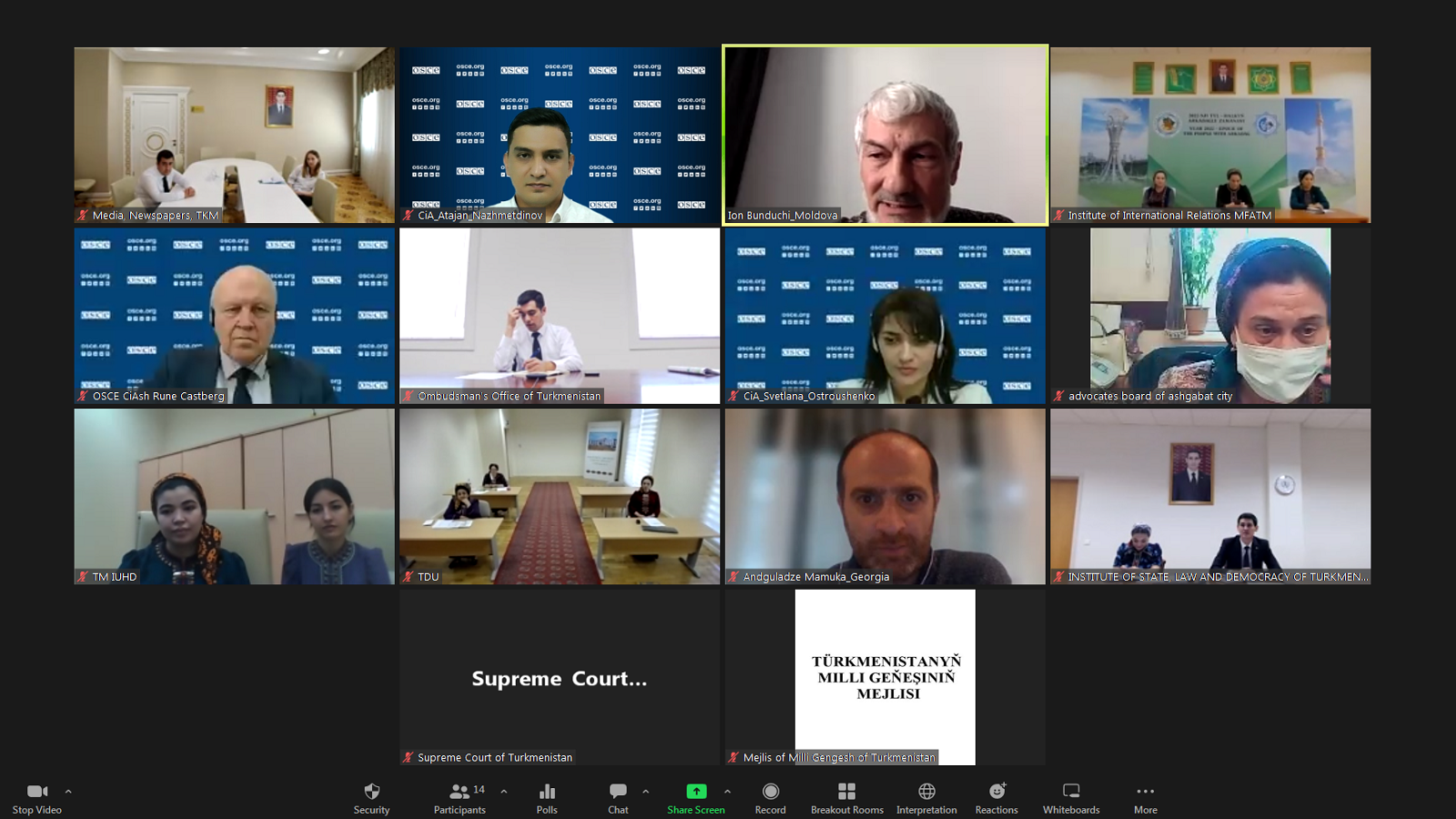 Participants at an OSCE-organized seminar on fostering media laws and practices that protect freedom of opinion and expression in Turkmenistan, May 16, 2022.