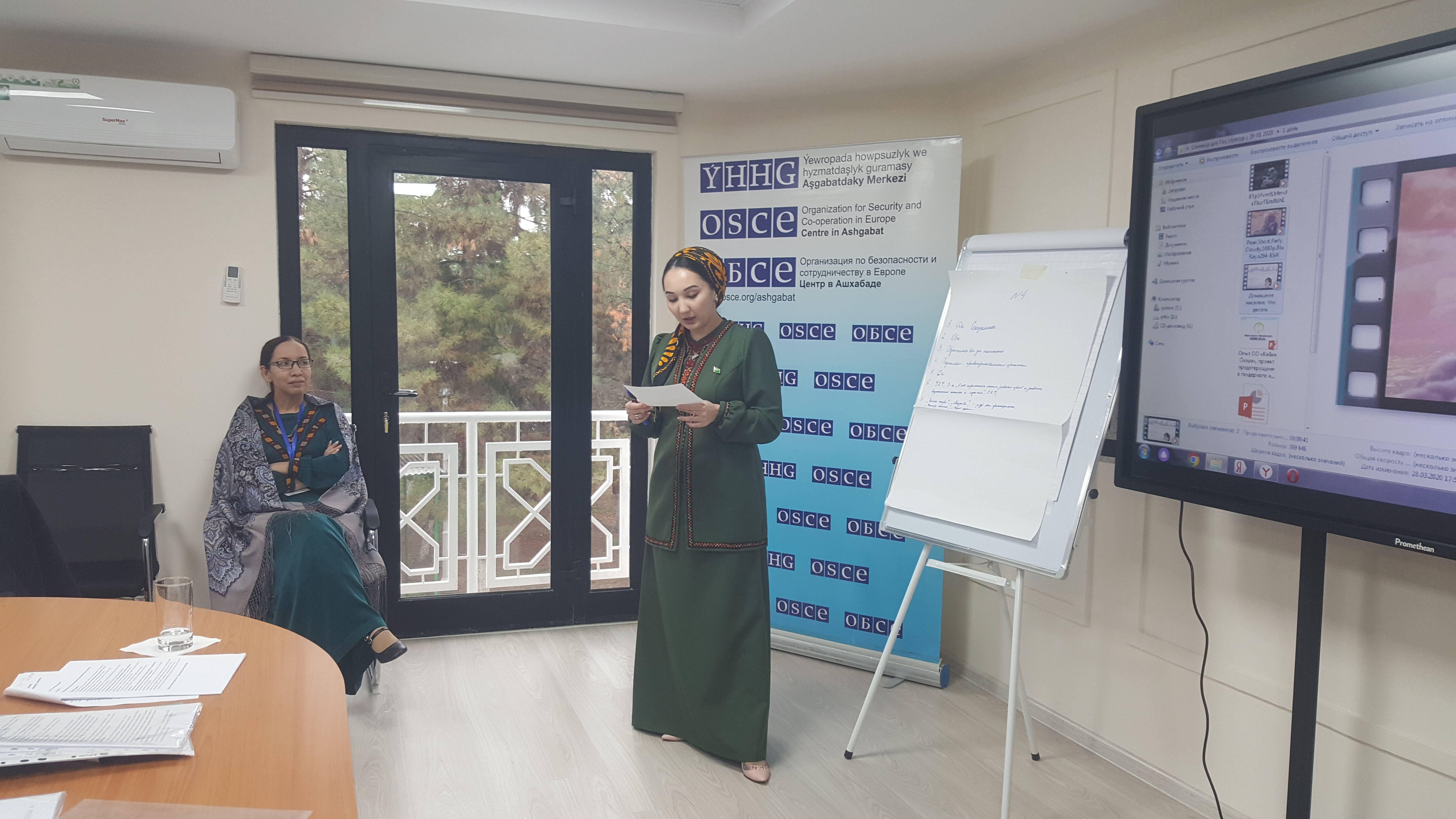 Participant presents results of a group discussion, held as part of an OSCE-supported workshop on gender roles, gender relations and domestic violence, Ashgabat, 30 November 2023/OSCE