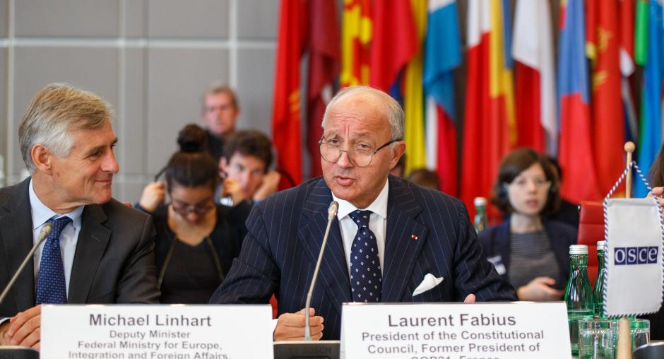 Laurent Fabius, the French President of the Constitutional Council and former COP21 President, focused on the close links between climate change and the environment; security and climate and how the fight against climate change contributes to international peace and security: “The OSCE, as the largest regional security organization in the world, can and should increase its involvement in this field. It can contribute to sharing experiences and good practices with regard to climate change adaptation measures and the development of climate resilient infrastructure. This is a crucial issue and the OSCE should devote a significant share of its activities to it.”