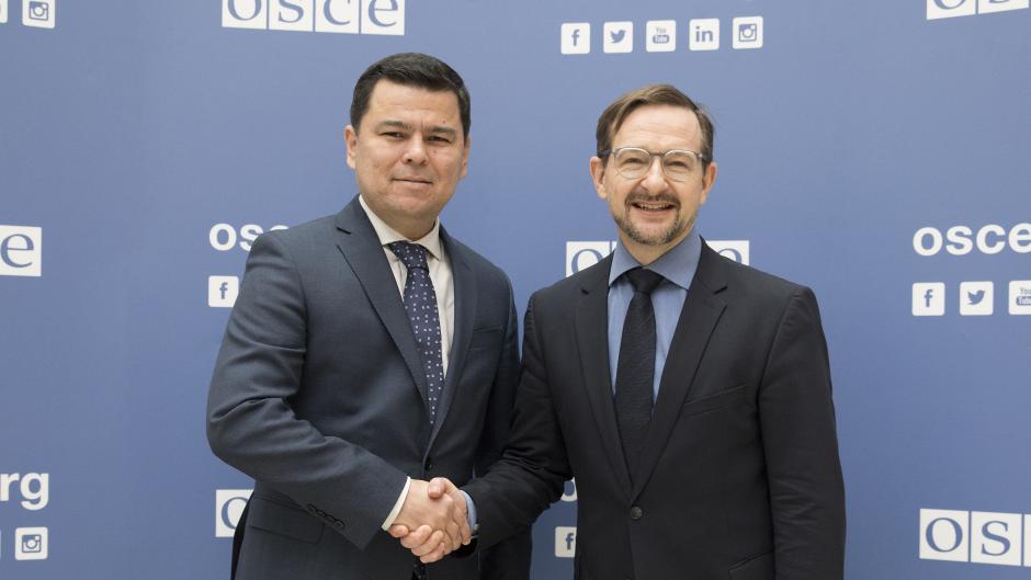 H.E. Sherzod Asadov, Permanent Representative of Uzbekistan to the OSCE, with OSCE Secretary General Thomas Greminger, Vienna, 30 November 2018.