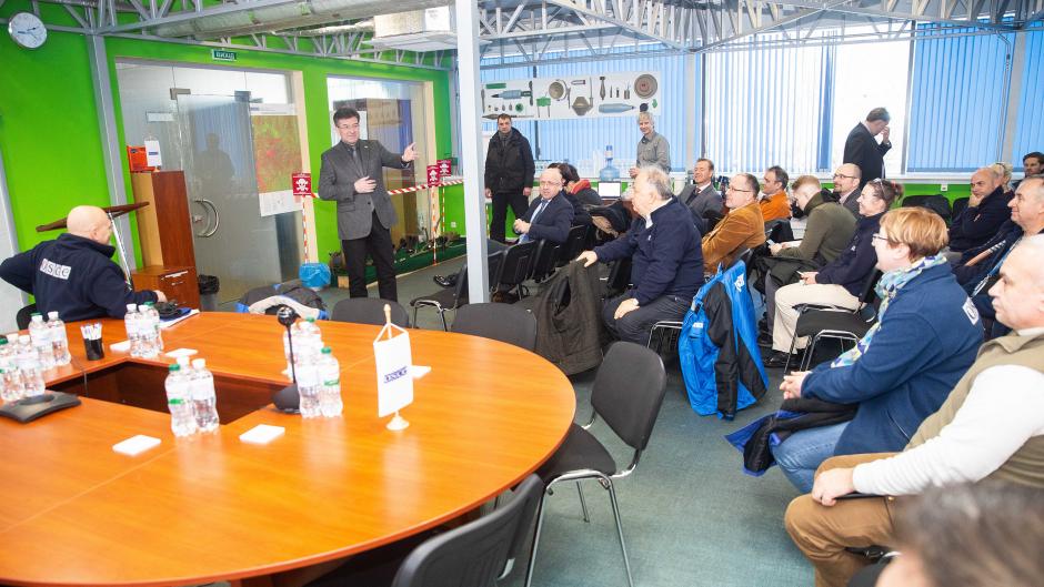 Miroslav Lajčák, OSCE Chairperson-in-Office and Minister of Foreign and European Affairs of Slovakia, adresses staff members of the OSCE Special Monitoring Mission to Ukraine, Severodonetsk,16 January 2019.
