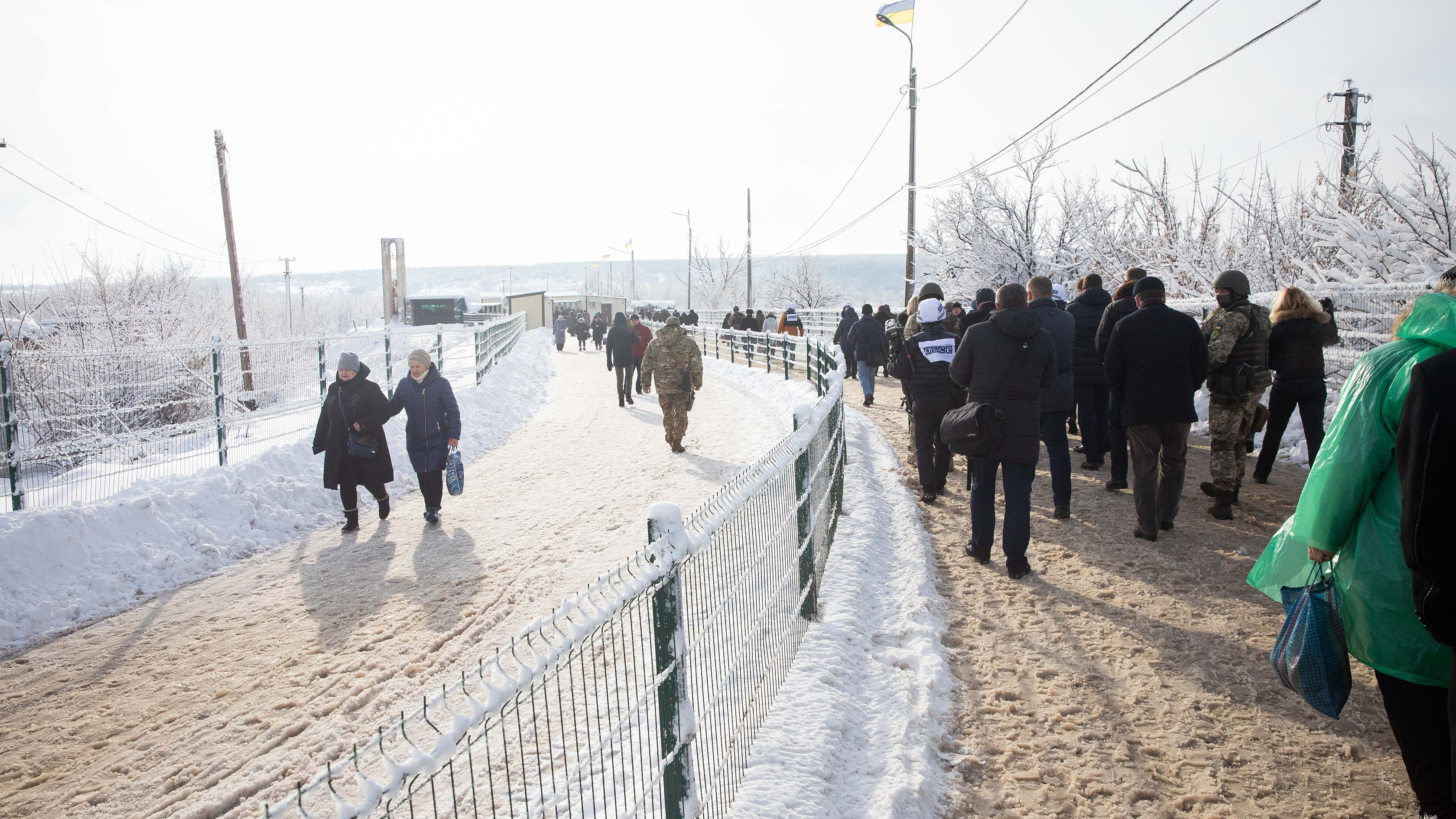 People crossing the Line of Contact at the entry-exit point in Stanica Luhanska, the only open crossing point in the Luhansk region, 16 January 2019.
