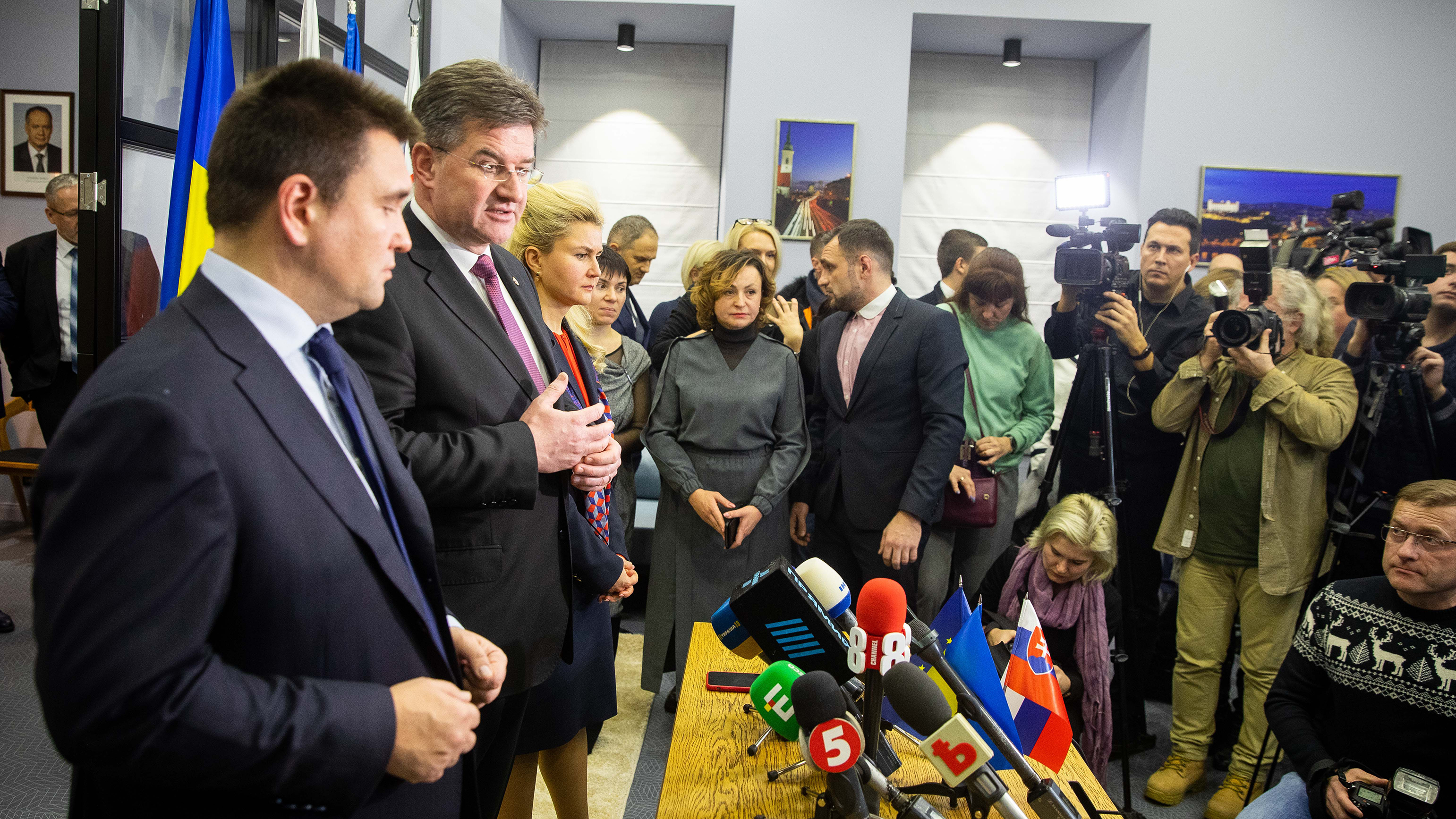Miroslav Lajčák, OSCE Chairperson-in-Office and Minister of Foreign and European Affairs of Slovakia, and Pavlo Klimkin, Ukrainian Minister of Foreign Affairs, during a press briefing, Kyiv, 15 January 2019.