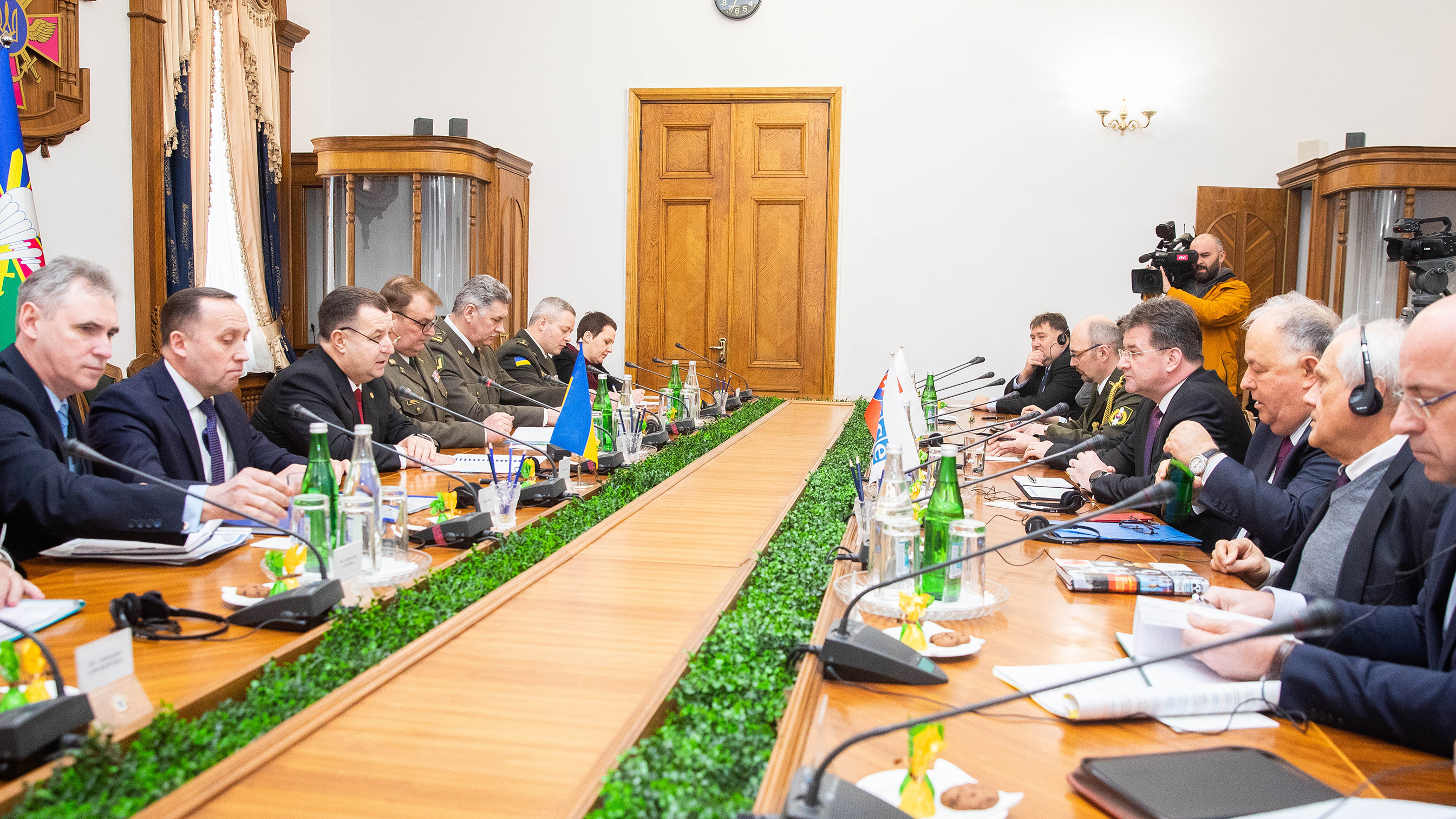 Miroslav Lajčák (centre-right), OSCE Chairperson-in-Office and Minister of Foreign and European Affairs of Slovakia, meets with Stepan Poltorak (centre-left), Defence Minister of Ukraine, Kyiv, 15 January 2019.