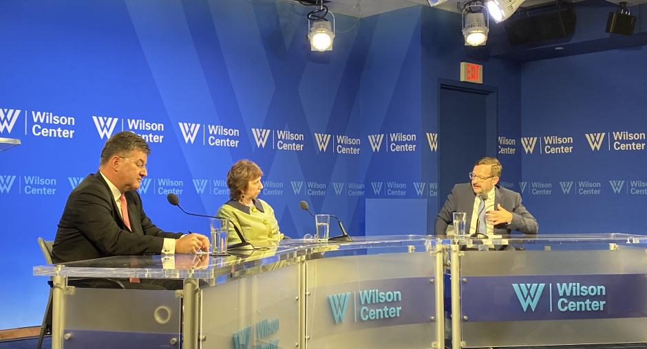 WASHINGTON D.C., 24 October 2019 – OSCE Chairperson-in-Office, Slovak Minister for Foreign and European Affairs Miroslav Lajčák, and OSCE Secretary General Thomas Greminger discussed yesterday the role of international organizations and regional co-operation in preventing conflicts at an event moderated by Baroness Catherine Ashton of Upholland, Chair of the Global Europe Program of the Wilson Center and former EU High Representative for Foreign Affairs and Security Policy.