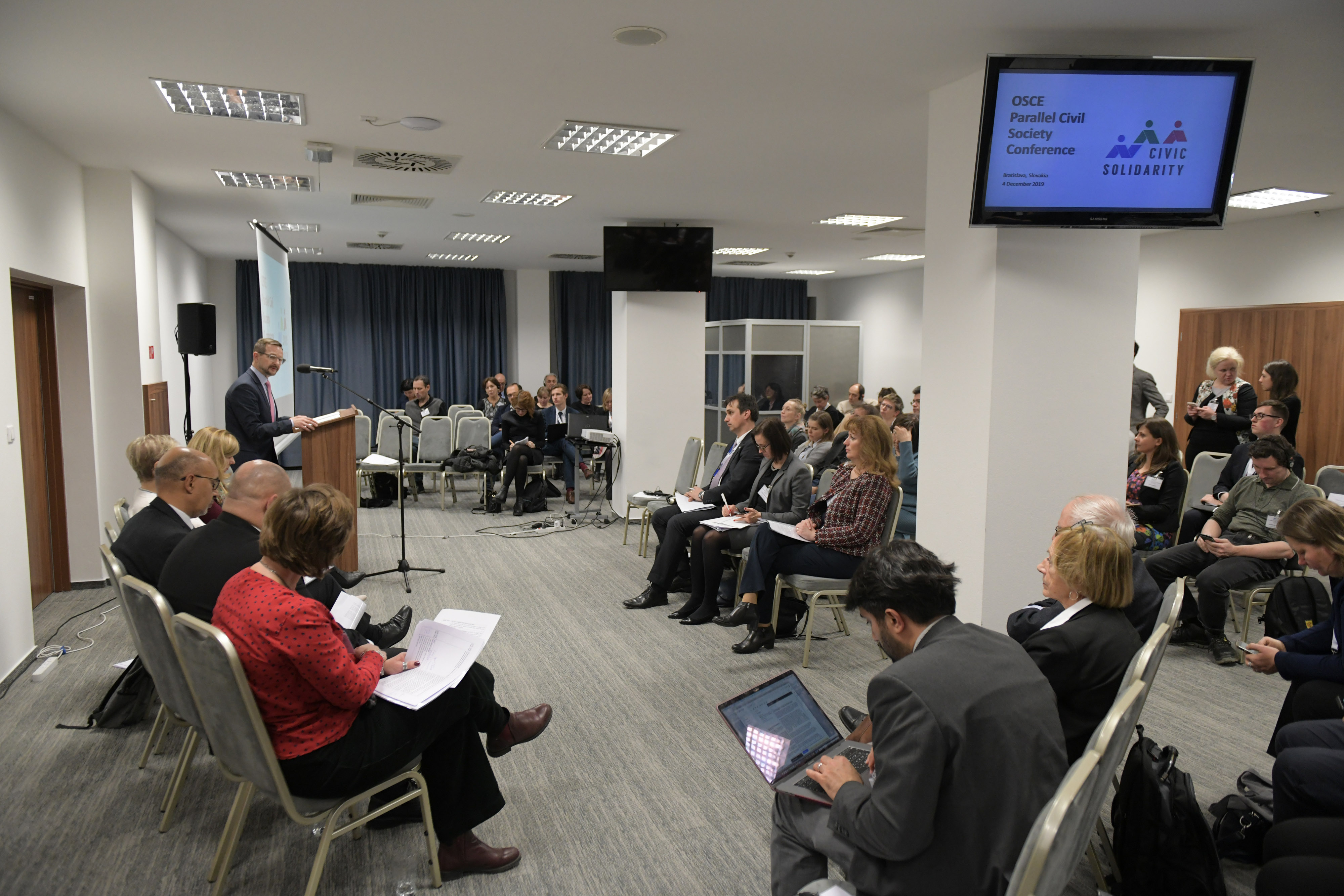 Participants at the closing session of the Parallel Civil Society Conference held on the eve of the 26th OSCE Ministerial Council, Bratislava, 4 December 2019.