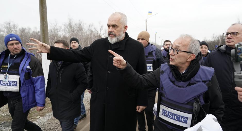 KYIV / STANYTSIA LUHANSKA, 21 January 2019 - OSCE Chairperson-in-Office, Prime Minister and Minister for Europe and Foreign Affairs of Albania, Edi Rama, today concluded a two-day visit to Ukraine. Rama called for strengthened efforts to find a peaceful resolution to the crisis in and around Ukraine, which he cited as the most pressing challenge to the security and stability in Europe today.