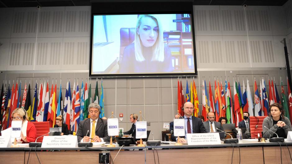 Romina Kuko, Deputy Minister of Interior of Albania, opens the 2020 OSCE Annual Police Experts Meeting on Police and the Media: Co-operation in Public Interest, Vienna, 28 September 2020.