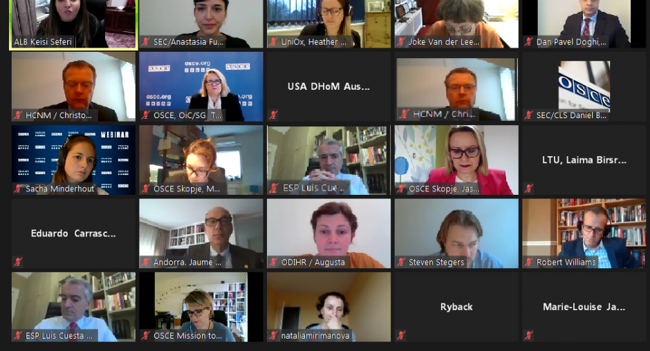 TIRANA 3 December 2020 – The role of history education in fostering social cohesion in diverse societies was the focus of a side event held via video teleconferencing today on the margins of the 27th OSCE Ministerial Council in Tirana. The event was organized by the Albanian OSCE Chairmanship, the Permanent Mission of Spain to the OSCE, the OSCE Secretariat, the Office for Democratic Institutions and Human Rights (ODIHR) and the office of the High Commissioner on National Minorities (HCNM).