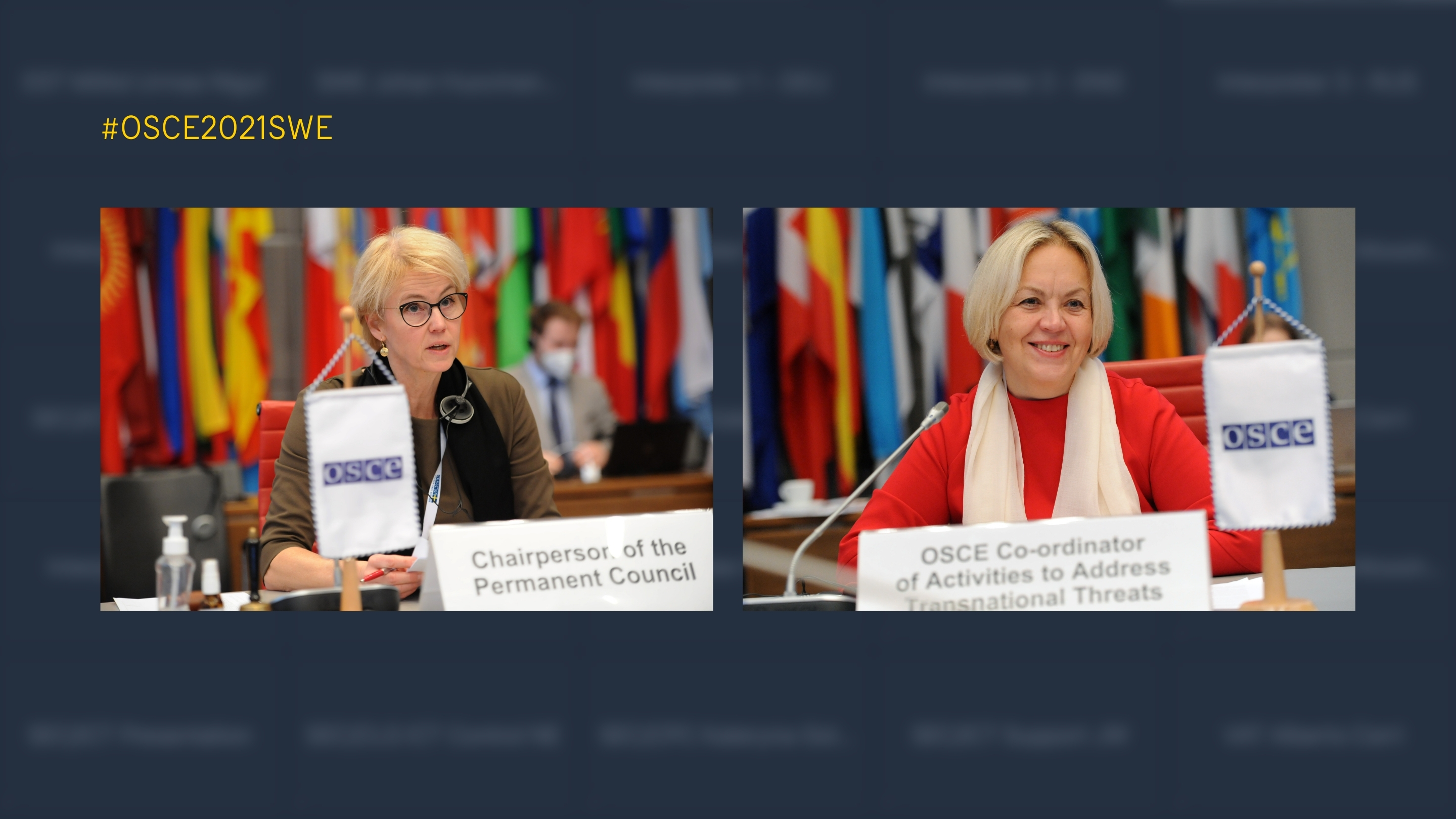 Ulrika Funered, Permanent Representative of Sweden to the OSCE and Alena Kupchyna, OSCE Co-ordinator of Activities to Address Transnational Threats speaking at the opening session of the OSCE-wide Cyber/ICT Security Conference, 4 May 2021.