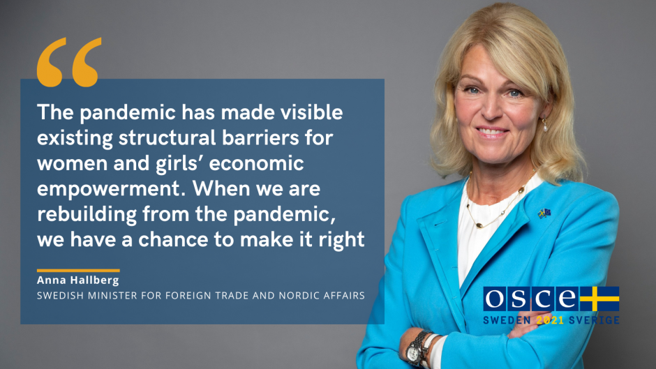 Swedish Minister for Foreign Trade and Nordic Affairs Anna Hallberg, 2nd Preparatory meeting of the OSCE Economic and Environmental Forum, 10 June 2021.