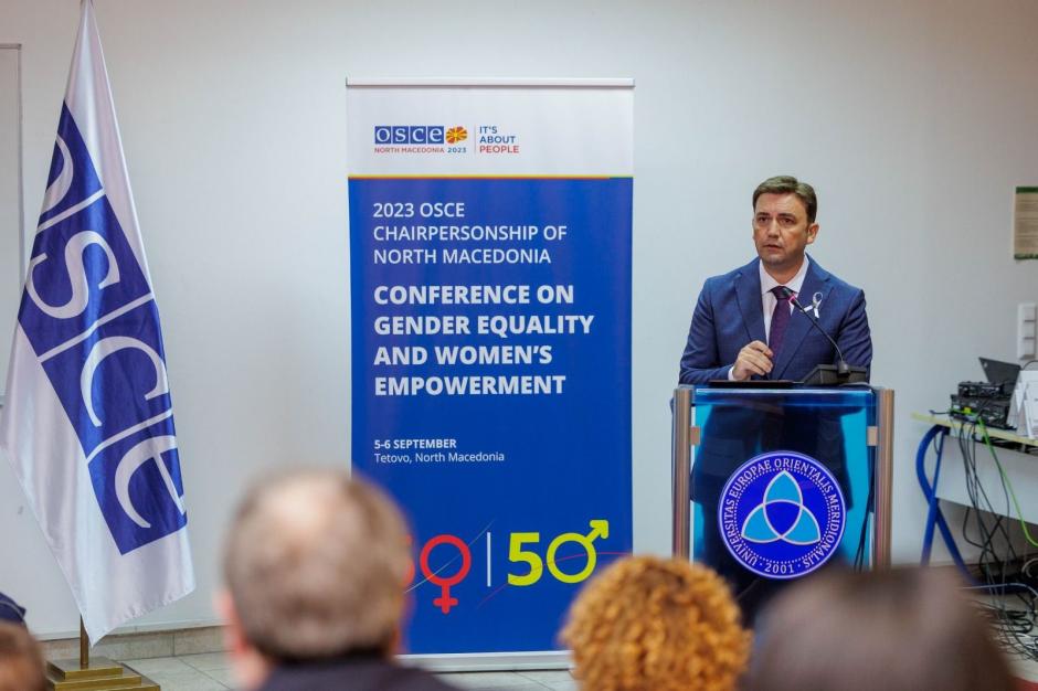 OSCE Chairman-in-Office, Minister of Foreign Affairs of North Macedonia Bujar Osmani, speaking at the Gender Equality and Women’s Empowerment Conference in Tetovo.