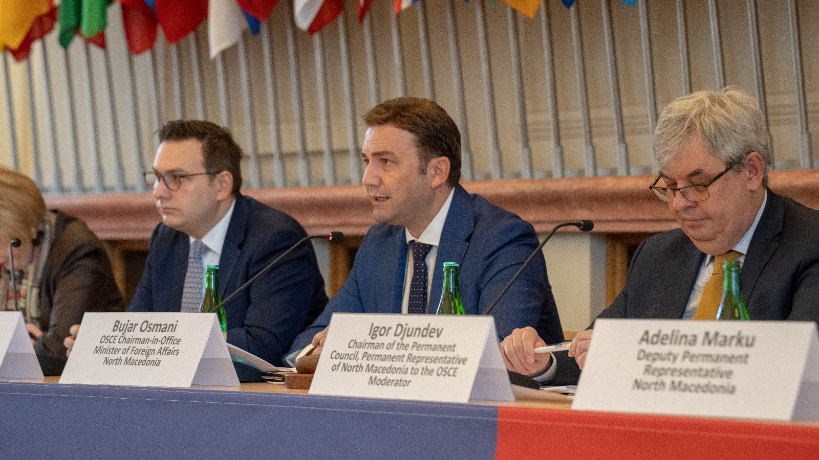OSCE Chairman-in-Office, Minister of Foreign Affairs of North Macedonia Bujar Osmani, speaking at the OSCE 2023 Prague Forum on the Economic and Environmental Dimension