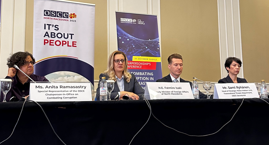 SKOPJE, 31 October – The 2023 OSCE Chairpersonship of North Macedonia hosted the OSCE Chairpersonship Regional Conference on Combating Corruption, Money Laundering, and Facilitating Asset Recovery Efforts in South-Eastern Europe today. The conference was organized in cooperation and with the support of the OSCE Transnational Threats Department and the Office of the Co-ordinator of OSCE Economic and Environmental Activities.