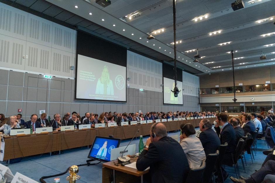 The OSCE Chairperson-in-Office, Finland’s Minister for Foreign Affairs Elina Valtonen, addresses the Annual Security Review Conference in Vienna, 25 June 2025.