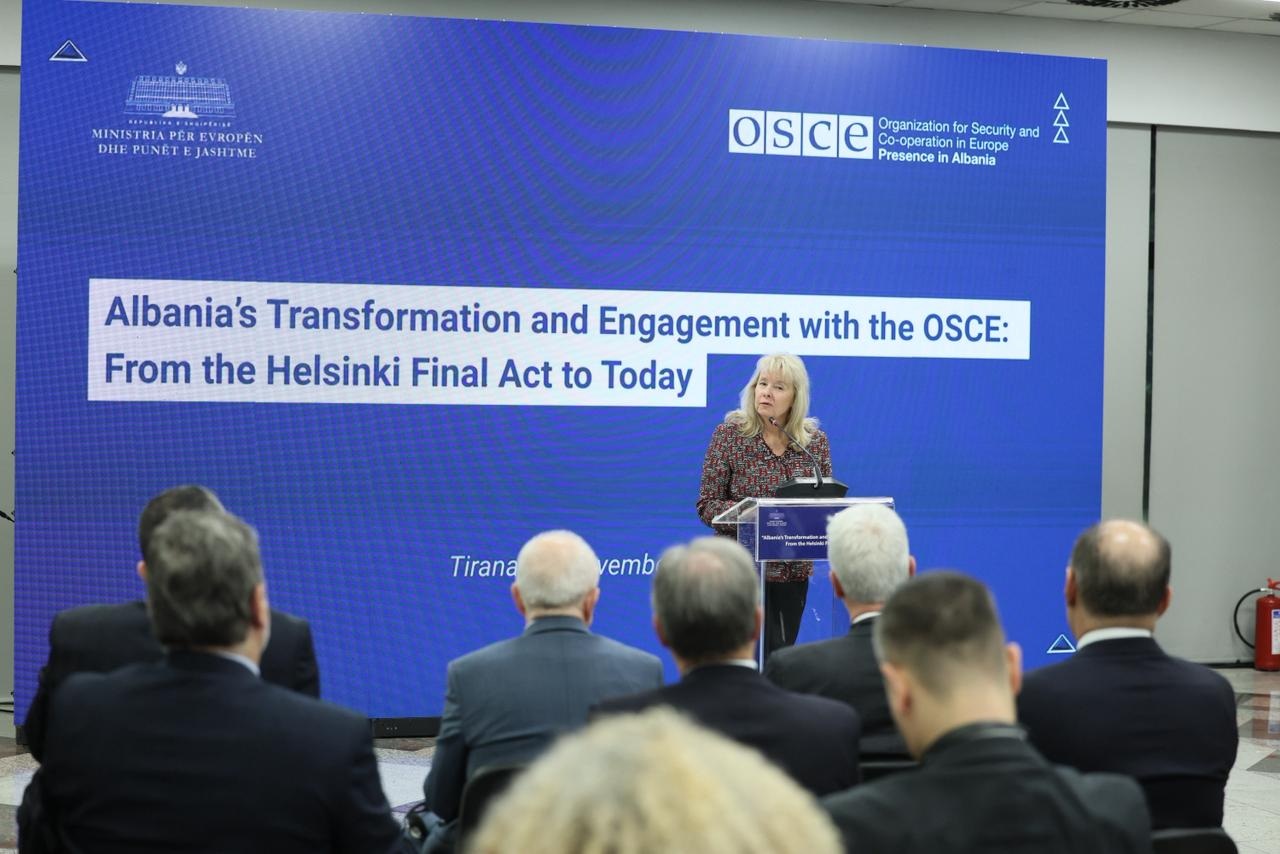 Special Envoy Terhi Hakala addresses the "Albania’s transformation and engagement with the OSCE: From the Helsinki Final Act to today” conference in Tirana on 25 November 2025.