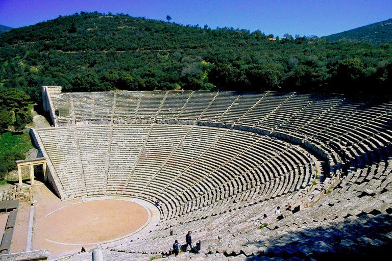 The ancient theatre of Epidavros in the Poloponnese region of southern Greece was built in the fourth century BC.
