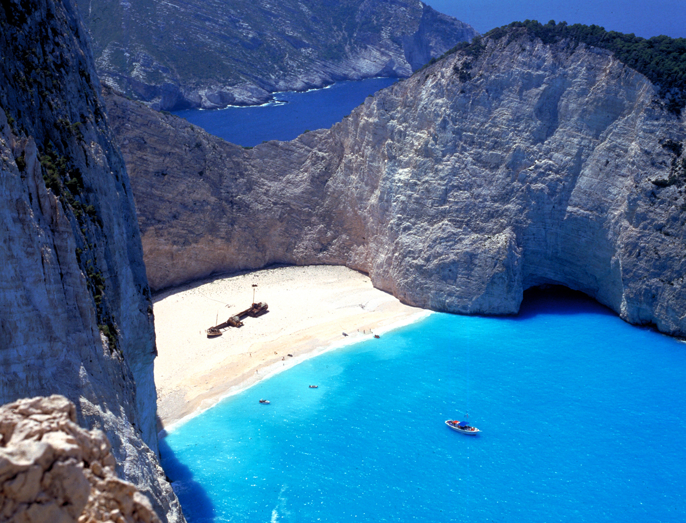 The Navagion beach on the Ionian island of Zakynthos, Greece.
