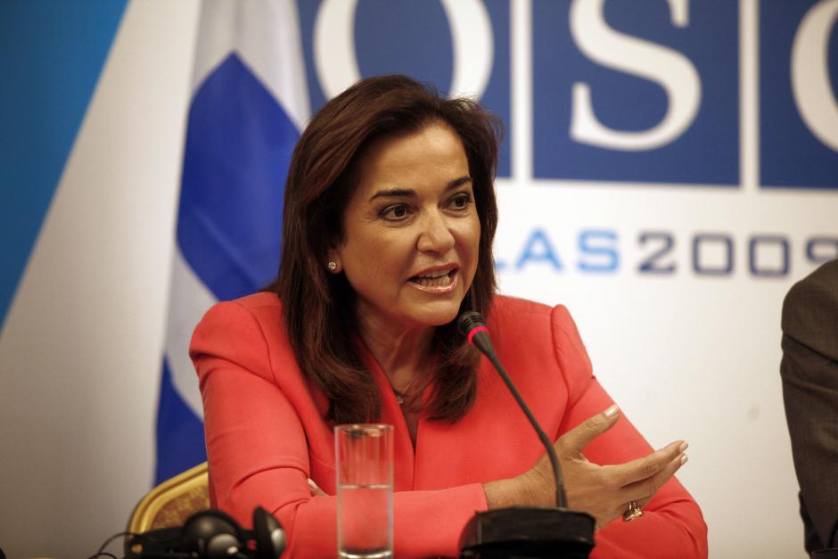 OSCE Chairperson-in-Office and Greek Foreign Minister Dora Bakoyannis at the press conference after the informal meeting of OSCE foreign ministers, Corfu, 28 June 2009.