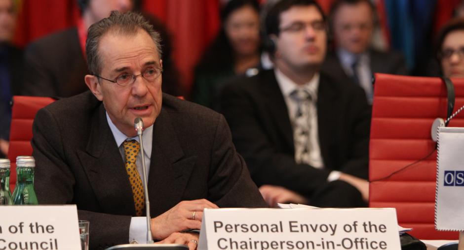 KYIV, 6 March 2014 - The Personal Envoy of the OSCE Chairperson-in-Office, Ambassador Tim Guldimann, briefing media in Kyiv today, commended the Ukrainian authorities for their efforts to de-escalate the situation on Crimea, adding that “the situation is calm, but very tense.”