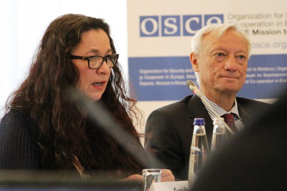 Jennifer Brush (l), Head of the OSCE Mission to Moldova, alongside the Special Representative of the OSCE Chairperson-in-Office for the Transdniestrian Settlement Process Ambassador Radojko Bogojević, Freising, 11 June 2014.