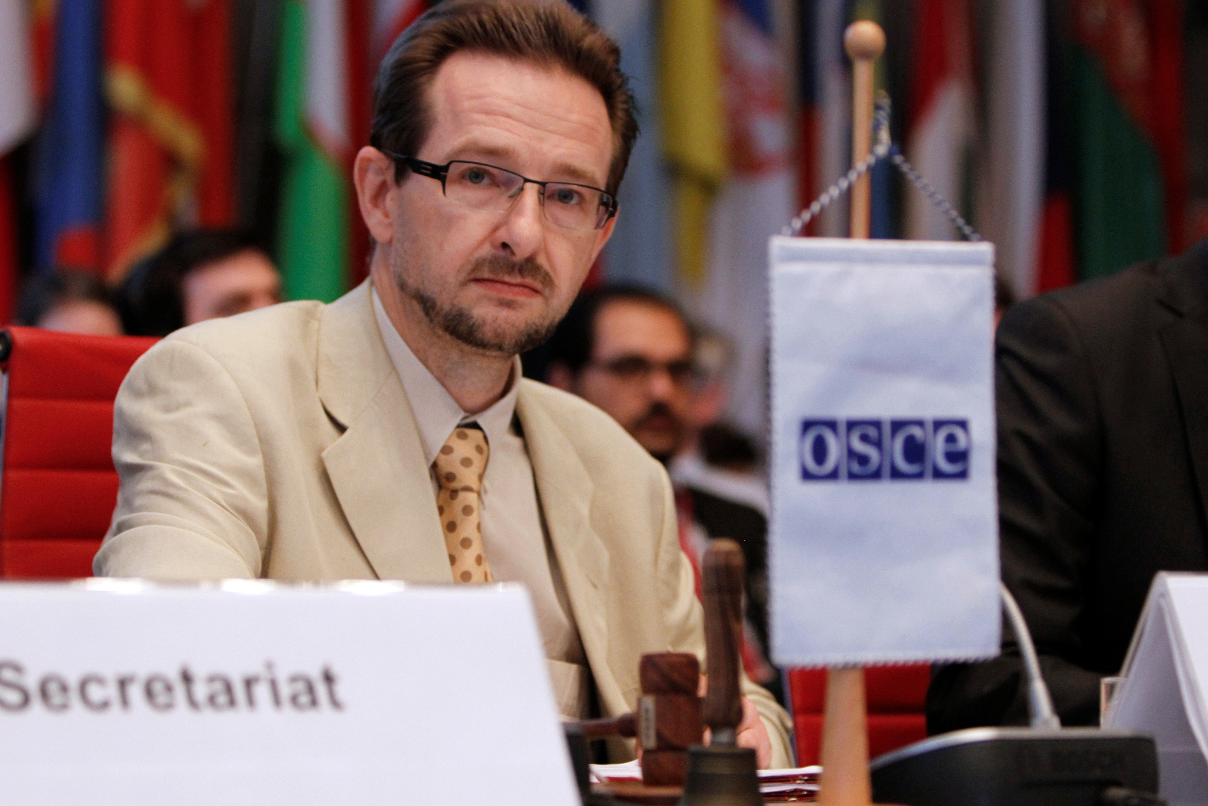 Ambassador Thomas Greminger of Switzerland, Chairperson of the OSCE Permanent Council, formally adopts a decision on the tragic crash of the Malaysian Airlines flight MH17 in Ukraine, Vienna, 18 July 2014.