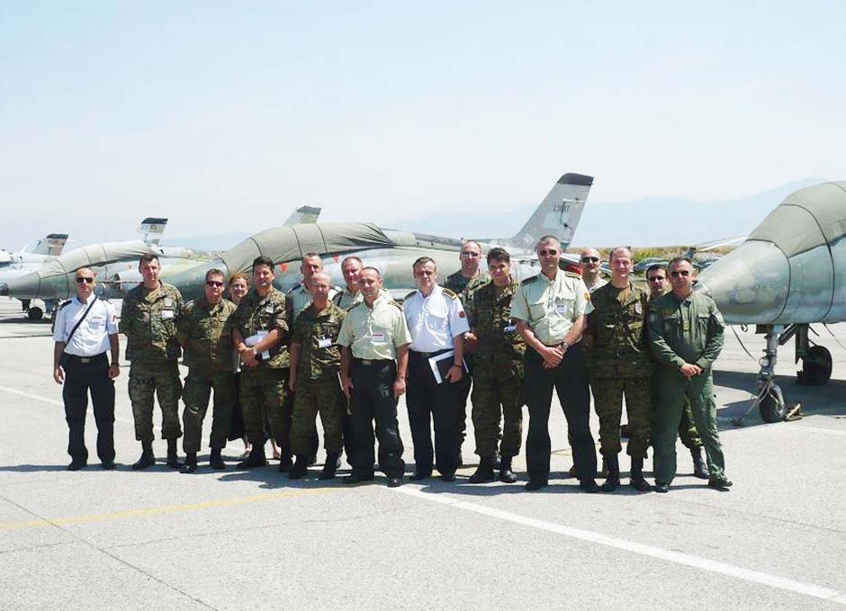 An Inspection Team from Bosnia and Herzegovina and an Escort Team from Montenegro in front of Combat Aircrafts G-4 N-62 at the Air Base Golubovici, Montenegro, June 2009.