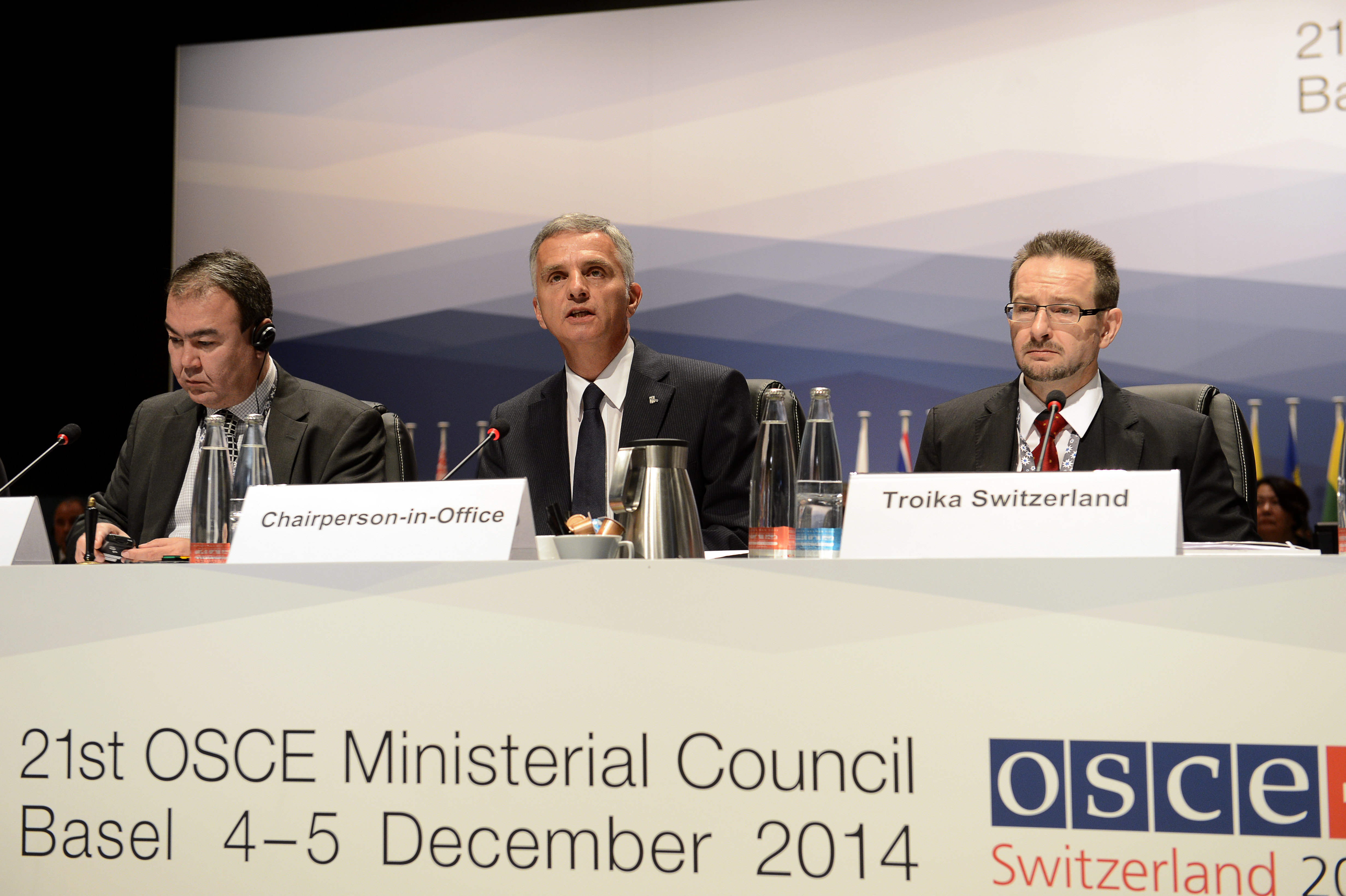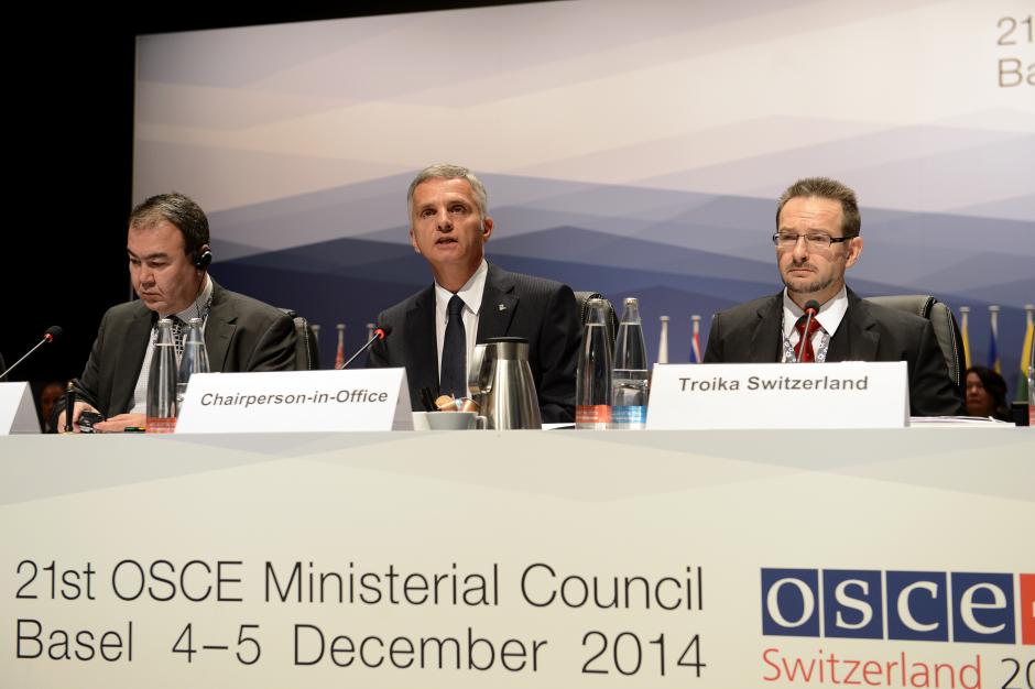 OSCE Chairperson, Swiss Foreign Minister Burkhalter (c) at the Opening session of the 21st OSCE Ministerial Council in Basel, 4 December 2014.
