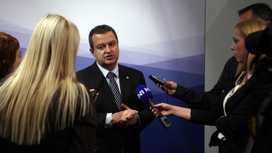 Incoming OSCE Chairperson, Serbia’s Foreign Minister Ivica Dacic, speaking to the media at the OSCE Ministerial Council in Basel, 5 December 2014.