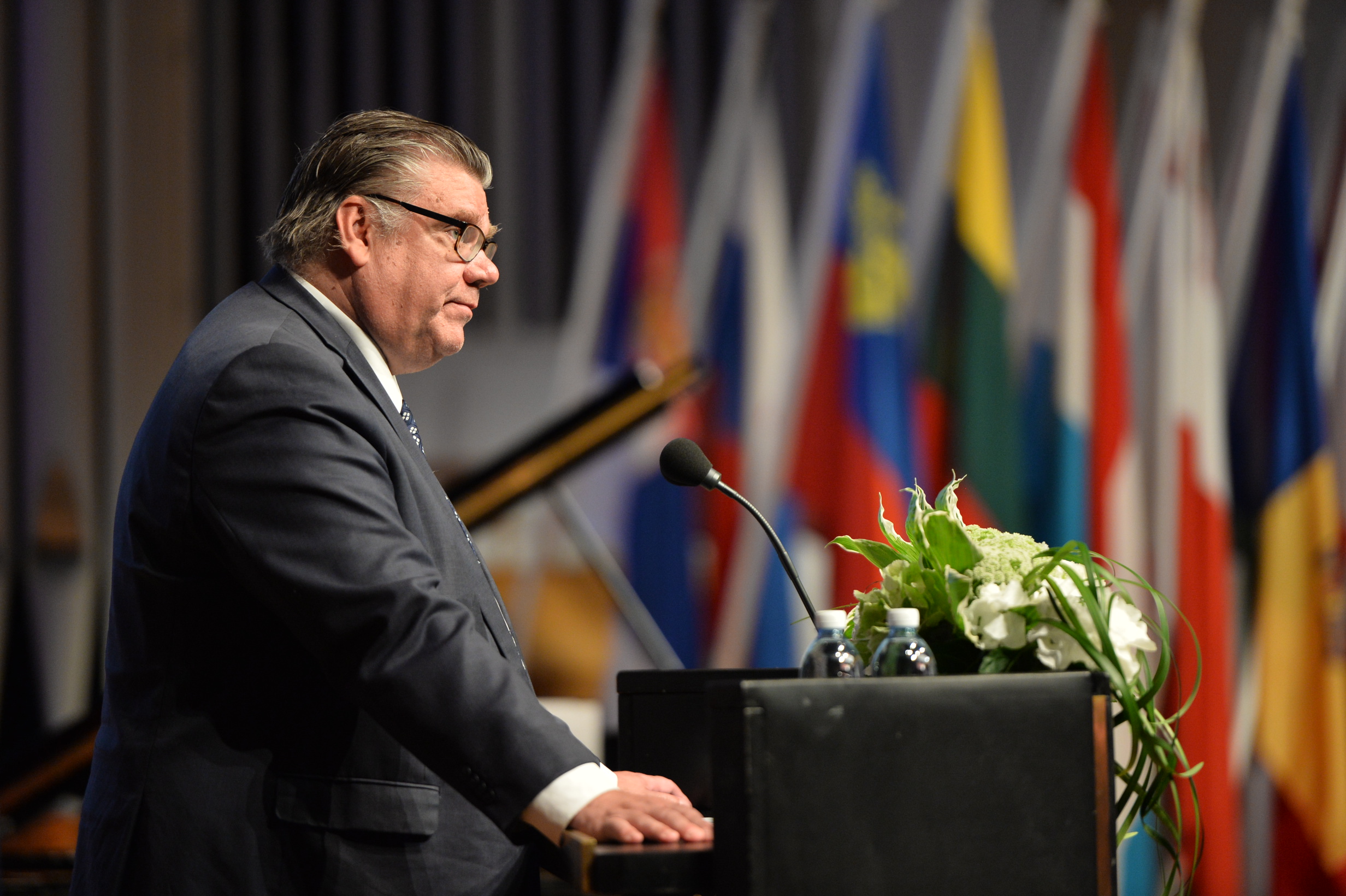 Timo Soini, Minister for Foreign Affairs of Finland, speaking at the Informal High-level OSCE meeting, Helsinki, 10 July 2015.