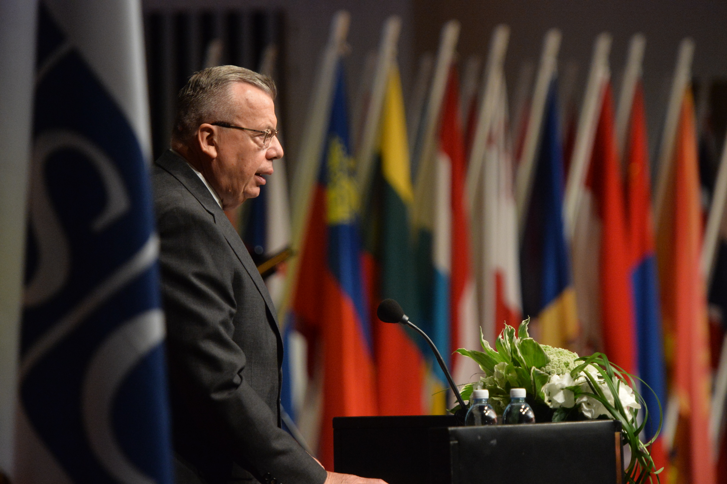 Yuri Fedotov, Under-Secretary General of the United Nations, Director-General of the United Nations Office in Vienna, delivering a message from United Nations Secretary-General Ban Ki-Moon at the OSCE Informal High-level meeting, Helsinki, 10 July 2015.