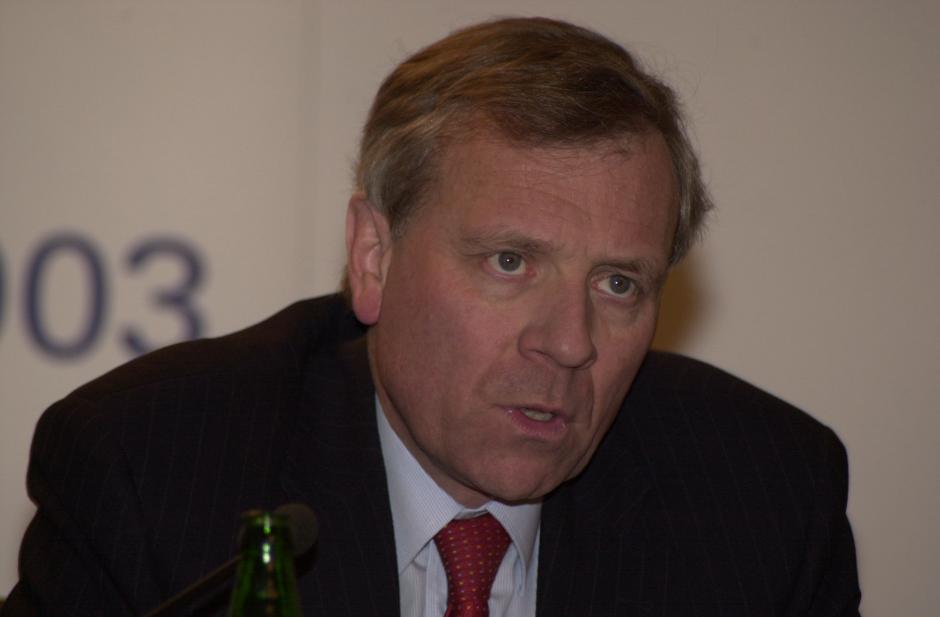 The OSCE's Chairman-in-Office in 2003, Netherlands Foreign Minister Jaap de Hoop Scheffer, addressing the press in Vienna, 13 January.