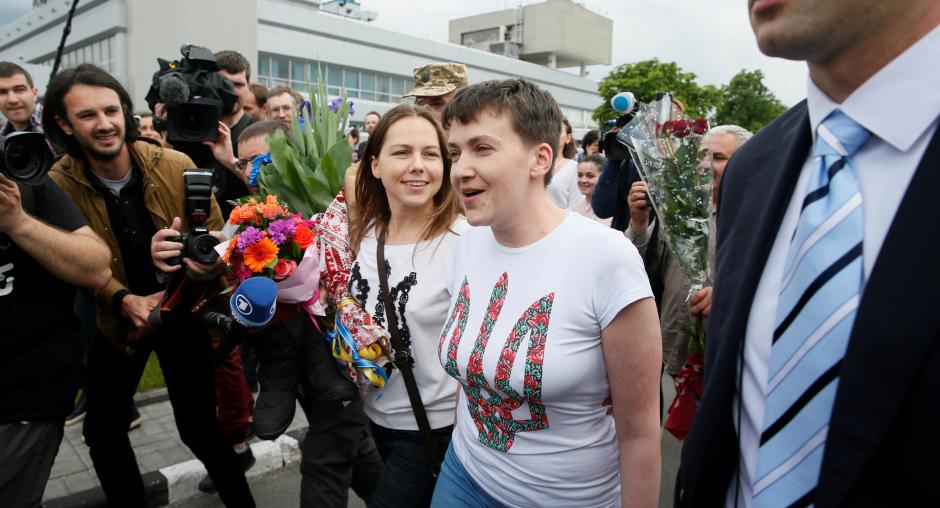 Nadiya Savchenko alongside her sister Vera Savchenko at Boryspil International airport outside Kyiv, 25 May 2016. (REUTERS/Gleb Garanich) Photo details