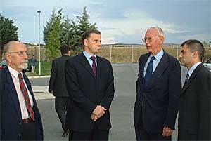 Personal Envoy, Max van der Stoel (right), and the Head of the