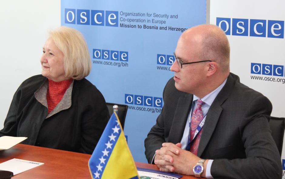Special Representative of the OSCE Chairmanship-in-Office on Gender Issues Melanne Verveer (l) alongside head of OSCE Mission to Bosnia and Herzegovina Jonathan Moore, Sarajevo, 1 July 2016.